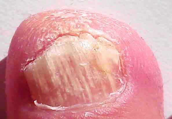 Bei einem Nagelpilzbefall können sich die Nägel gelblich verfärben und verdicken, und sie können brüchig bis sogar krümelig werden. Der von Pilzsporen befallene Nagel beginnt vom Nagelrand her nach hinten. Der Nagel kann sich gelblich und weißlich bis bräunlich in Streifen- oder Felckenform verfärben, oft verdickt sich das Nagelbett, und das Nagelbett kann sich entzünden. Dies kann sogar soweit führen, dass man unter Gehbeschwerden leiden kann. Wenn man unter diesem Pilzbefall leidet, können die Pilzsporen auch eine leichtere Anfälligkeit für andere Krankheiten verursachen, da in den verletzten Nagel andere Bakterien und Viren leichter eindringen können.